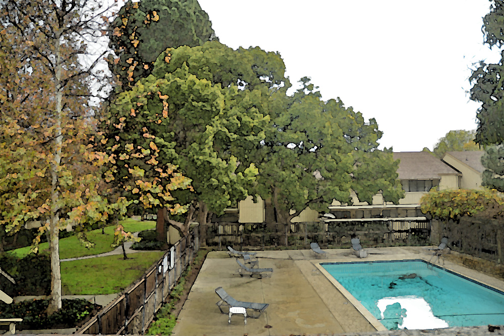 Watercolor Version of the Main Pool at Woodsborough Condominiums
