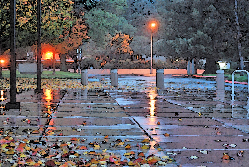 Watercolor of Night-Time Traffic on Kiely Blvd. at Central Park Entrance
